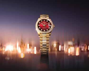 The new Oyster Perpetual Datejust 31 in 18 ct yellow gold and it is fitted on a President bracelet and unveils a red ombré dial, a very delicate color created using PVD (Physical Vapour Deposition) technology. The watch includes a 46 brilliant-cut diamonds bezel set.