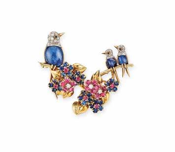 Yellow gold, white gold, rubies, sapphires, diamonds