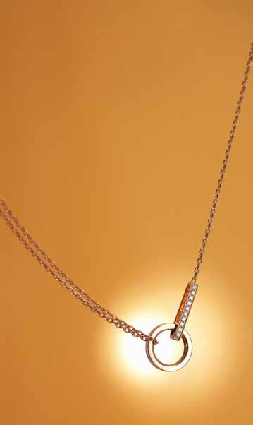 A tribute to the iconic Berbere Module paved ring: This new pendant offers a bold reinterpretation of the de composed Berbere signature ring. Playing with con trast between void and full, the pendant showcases every key element of the ring: the plain gold circle, the line of paving diamonds, the signature bar.