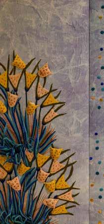 The lead artisan tasked with bringing this idea to life, Brienny Dudley, experimented with a variety of stitches and hues before selecting the tatami stitch, which was applied over six layers, interlacing in varying degrees of density and complexity. The full interior composition comprises 869,500 stitches and takes over 40 hours to complete.