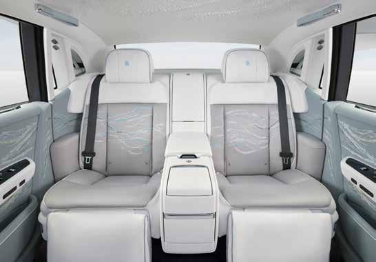 The interior is filled with design elements, textures and a continuous graphic inspired by the Spirit of Ecstasy’s expressive, dynamic