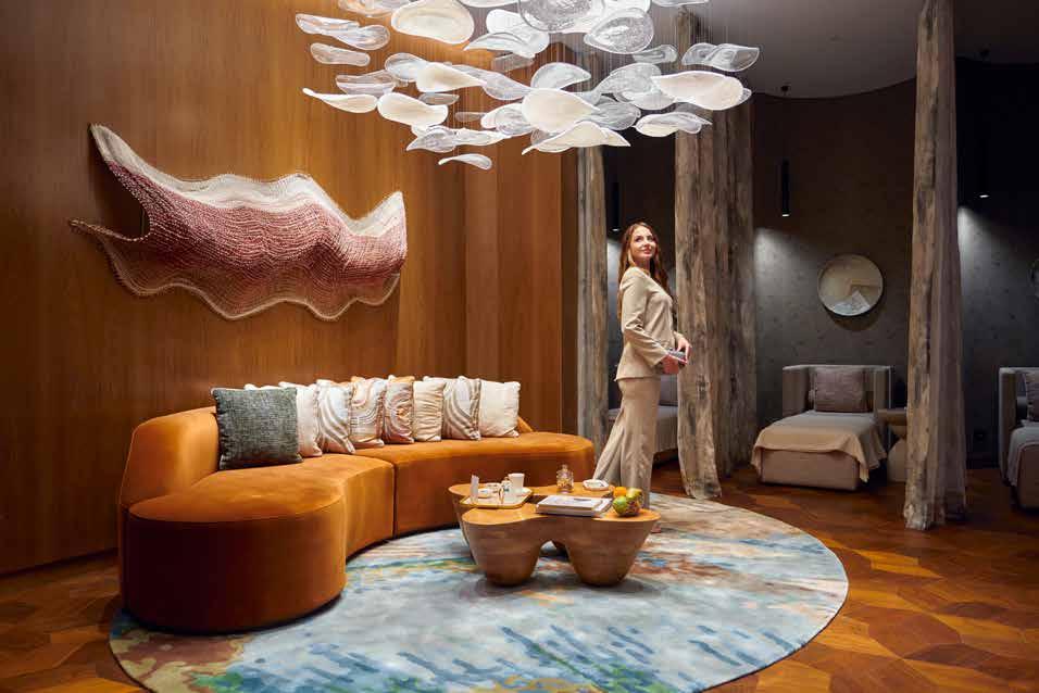 Upon entering The St Regis Spa, one is immediately enveloped in an atmosphere of refined elegance and calm The design, with its modern yet timeless aesthetic, is a testament to the spa ' s commitment to luxury and comfort. Every detail, from the serene color palette to the carefully chosen furnishings, has been meticulously curated to create a space that feels both opulent and inviting