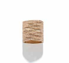 An Art Deco style brooch that transforms into a necklace associ ate rattan with 379 brilliant-cut di amonds and gold – both yellow and rose. From this arid landscape, some imaginary animals emerge: a majestic Gazelle ring, soft and powerful at the same time. The tenderness of her onyx eyes con trasts with the vigour of her horns, set with baguette diamonds. A 2.15 carat diamond shines proudly on her forehead.