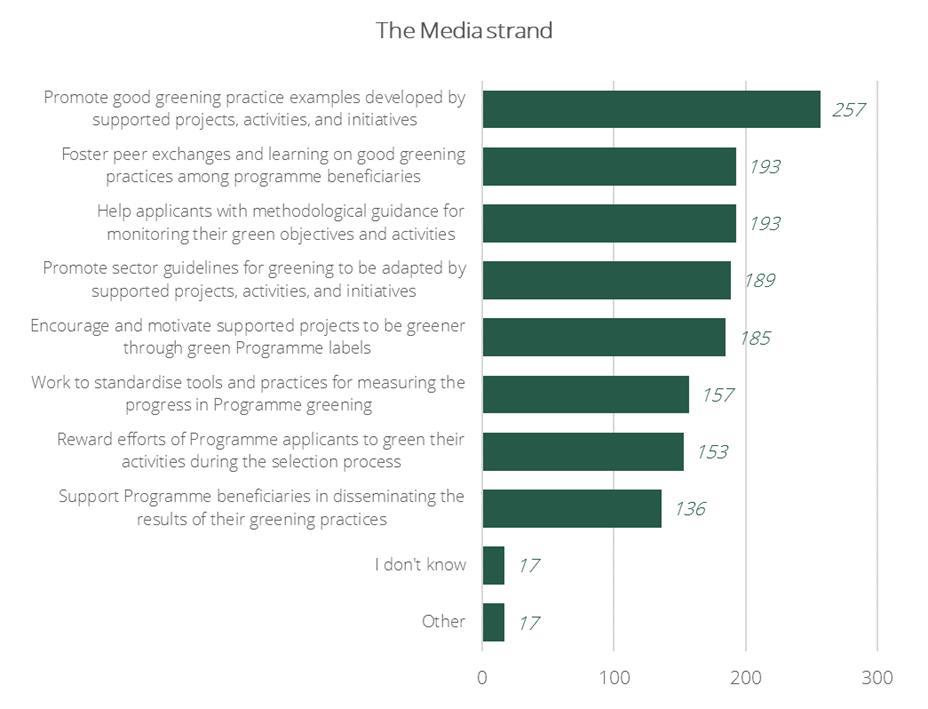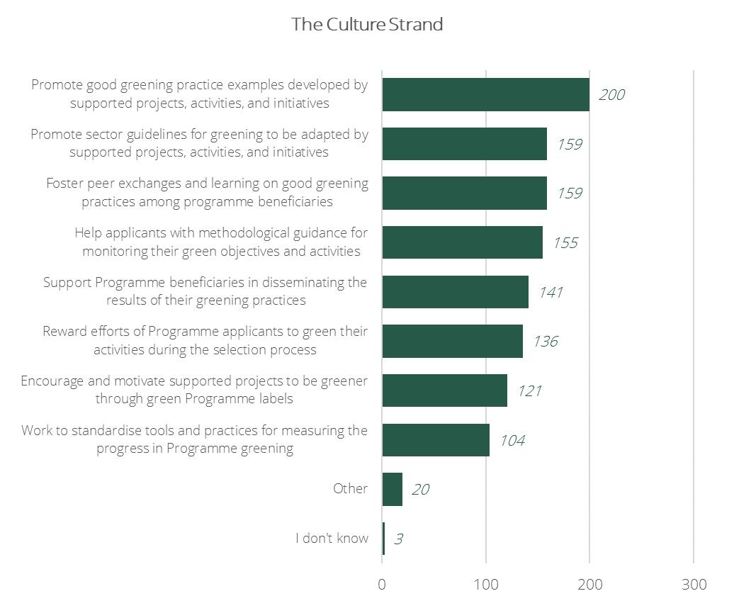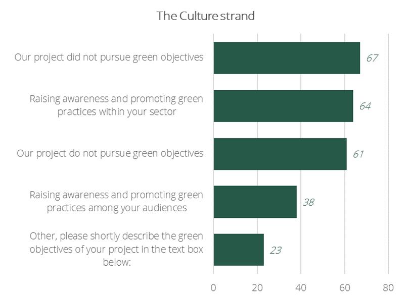 ‘External greening’ in the context of this study refers to supported projects pursuing green objectives of promoting sustainability and fight against climate change either as their primary focus or alongside other objectives such as cultural or artistic creation, innovation, social inclusion etc.