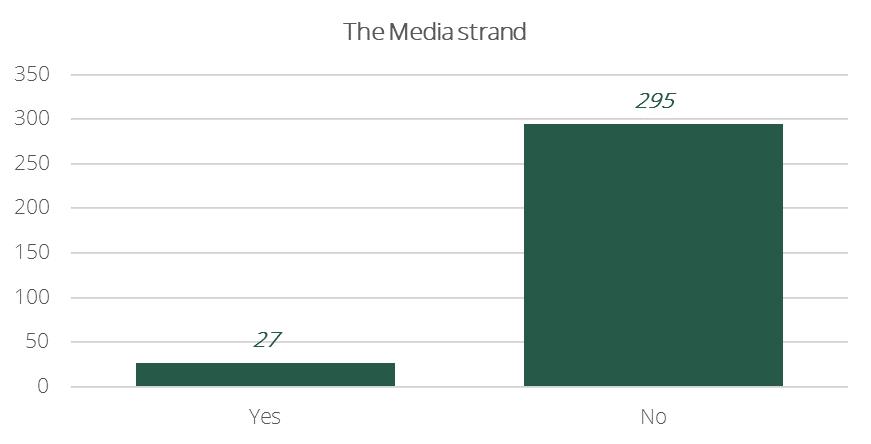 Figure 2: Development in share of programme budget awarded to green projects, by subprogramme/strand under the predecessor Creative Europe Programme 27