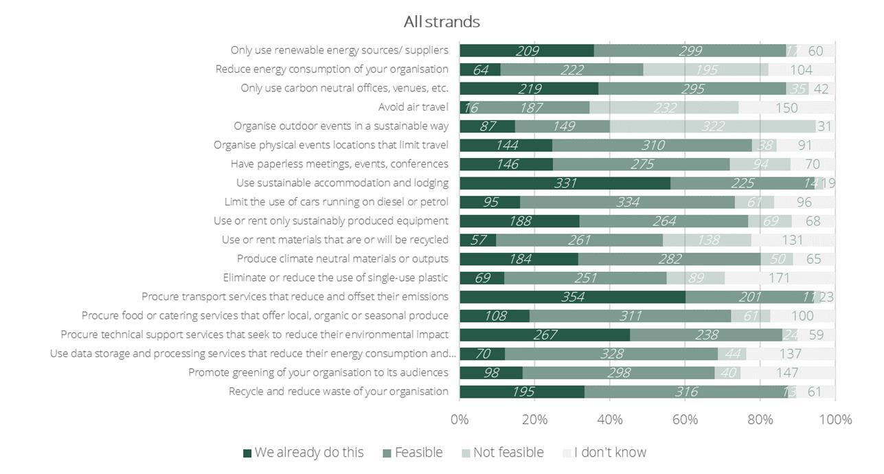 ‘Internal greening’ in the context of this study refers to projects supported by the Creative Europe Programme making decisions and implementing corresponding management and project activities1 to reduce their environmental impact, including the impact of the supported project activities on climate change.