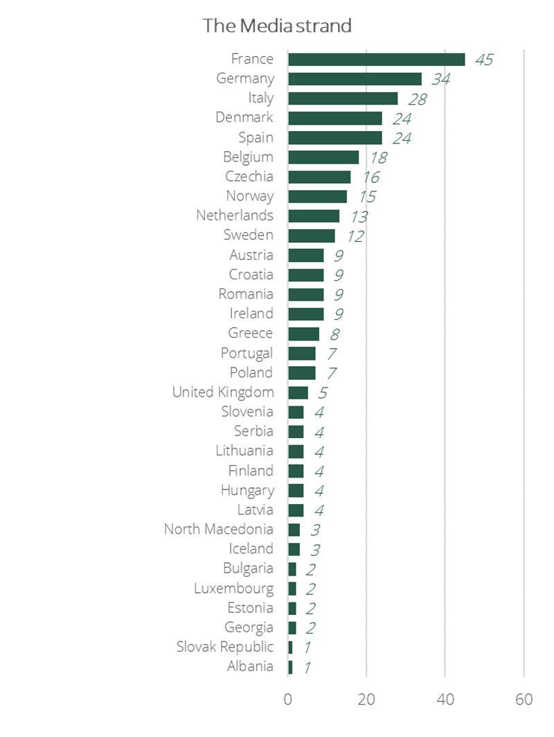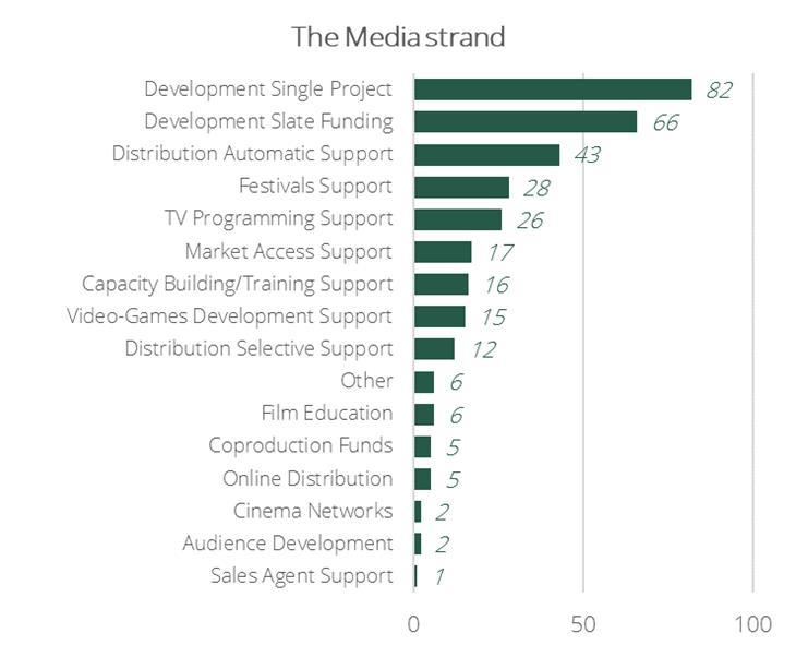 Figure 3: Number of ‘green’ projects per sub-programme and grant scheme supported by the predecessor Creative Europe Programme 28