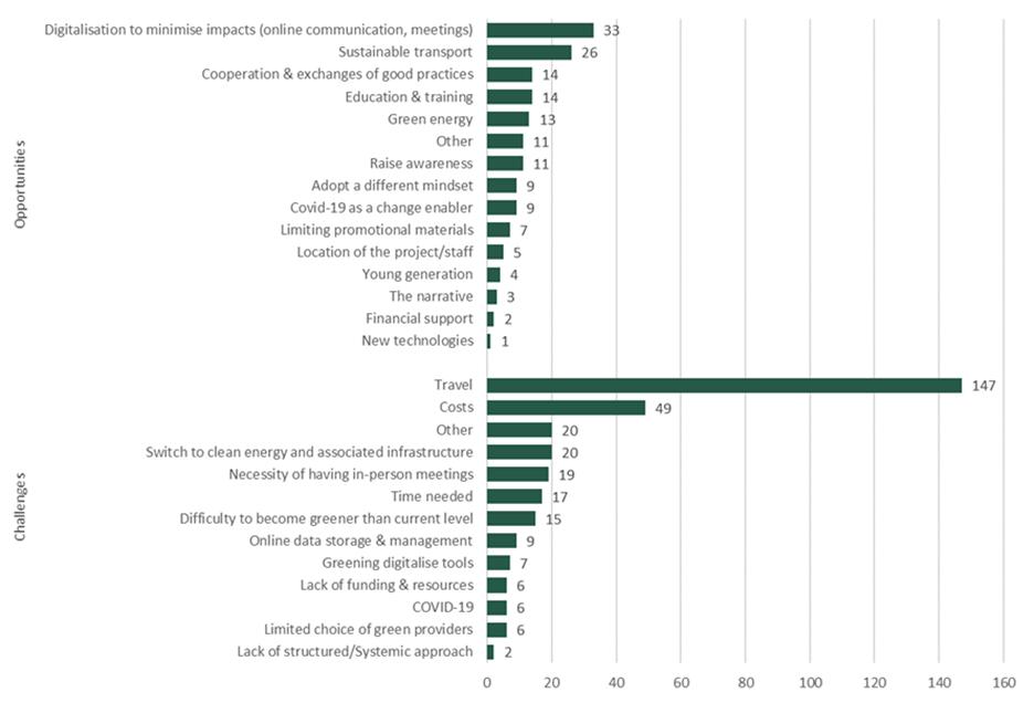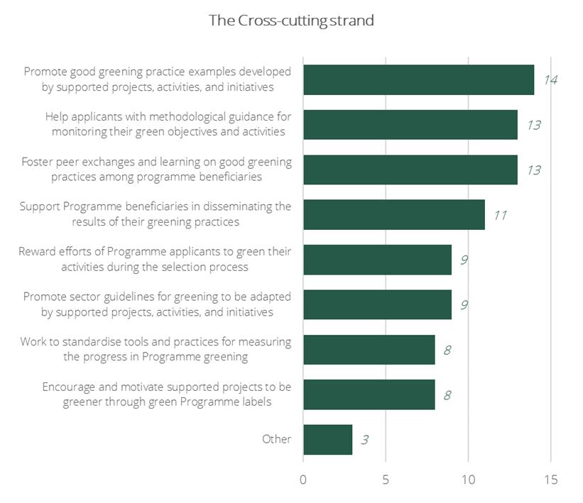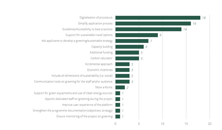Figure 5: Number of respondents representing projects supported by the predecessor programme who indicated that they ‘greened’ the following project activities (multiple answers possible).................................................................................................33