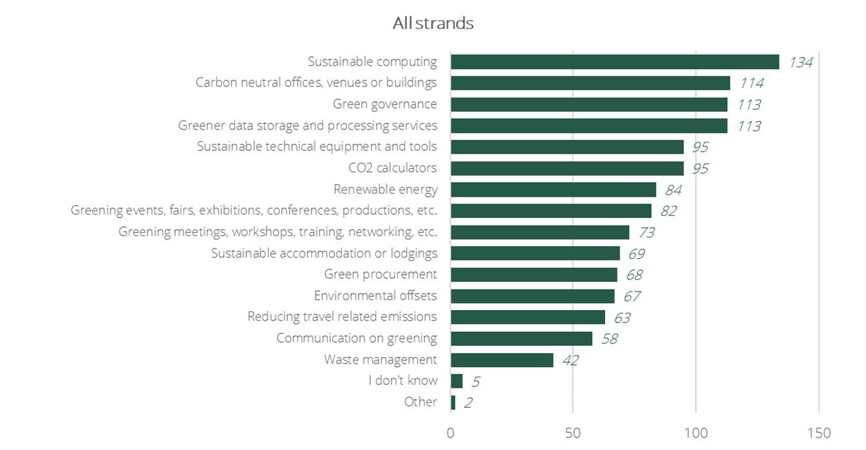Figure 7: Which aspects does your organisation need to learn more about to be able to green your projects, actions, or initiatives?..............................................................63