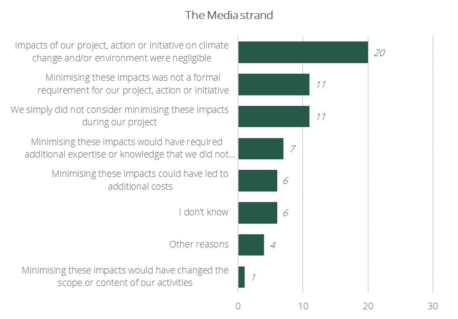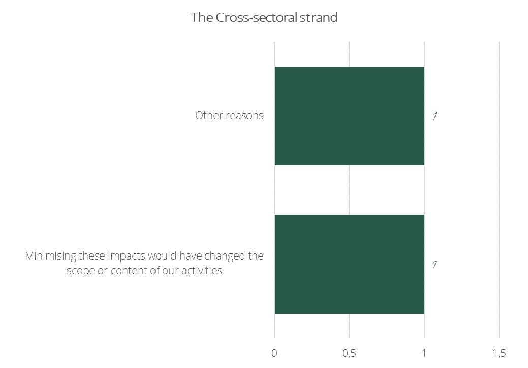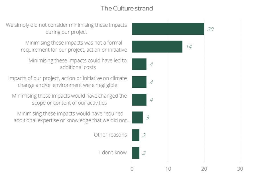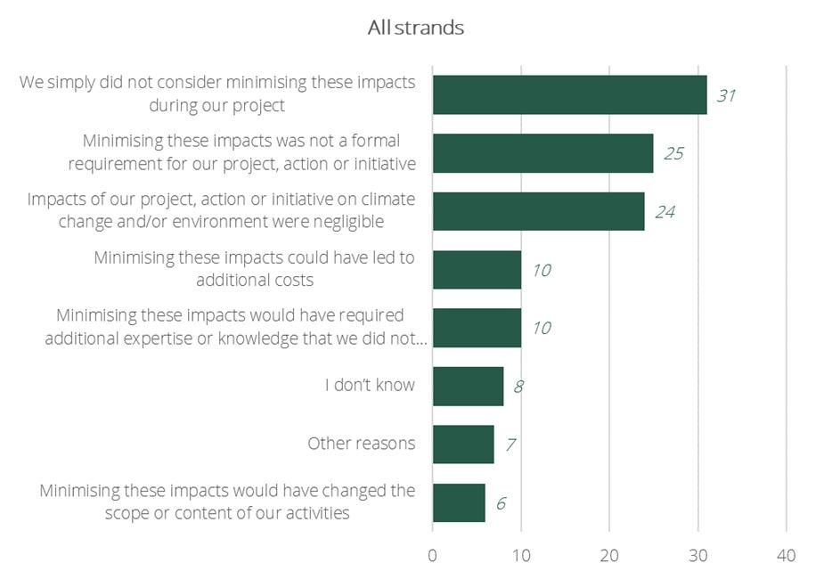 Figure 6: Reasons provided by respondents representing projects supported by the predecessor programme for not minimising the impact of their project’s actions or initiatives on climate change and environment (multiple answers possible)..................34