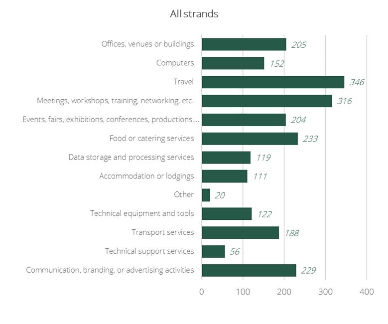 • More sustainable subsistence, including stay options302 – eligible greening costs could cover more environmentally sustainable subsistence options chosen voluntarily by programme beneficiaries instead of the ‘usual’ options303;