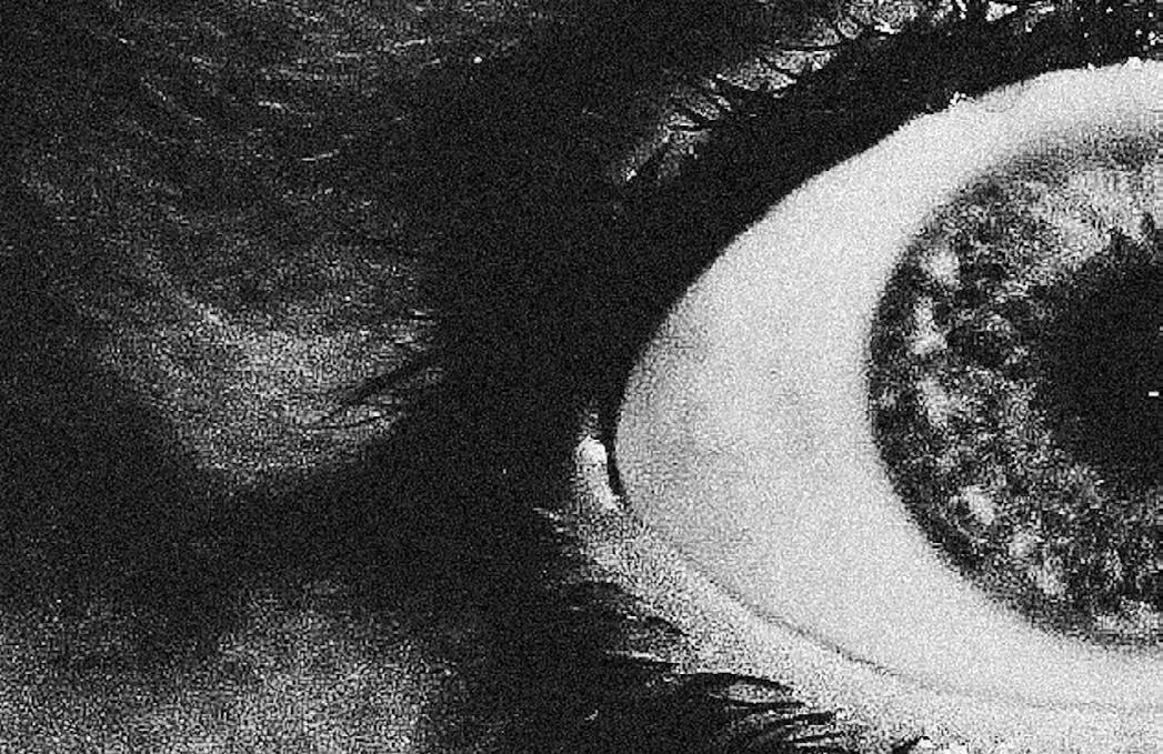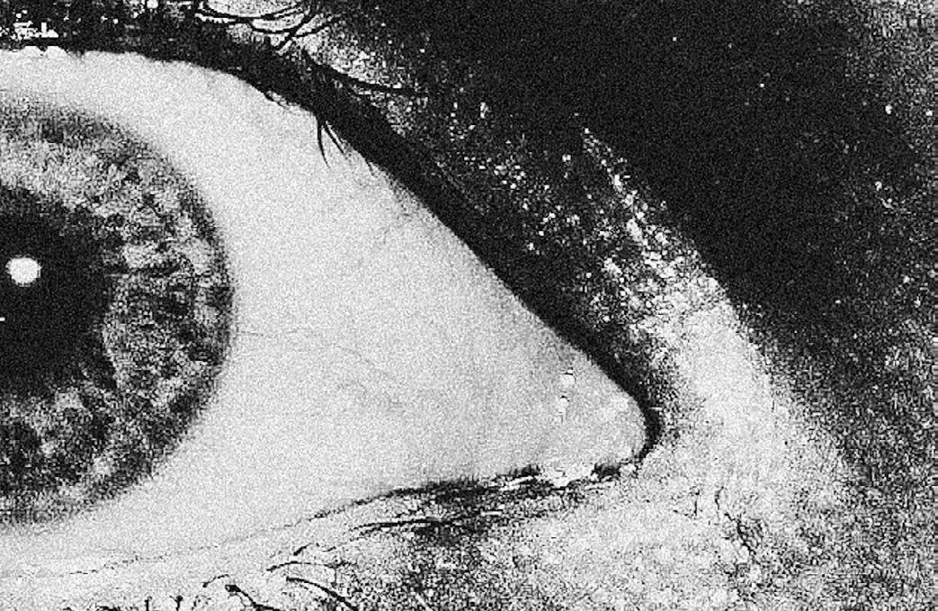 Feeling uneasy, he braced himself against the sink and leaned toward the mirror, his right thumb and index finger propping his eyelids open.