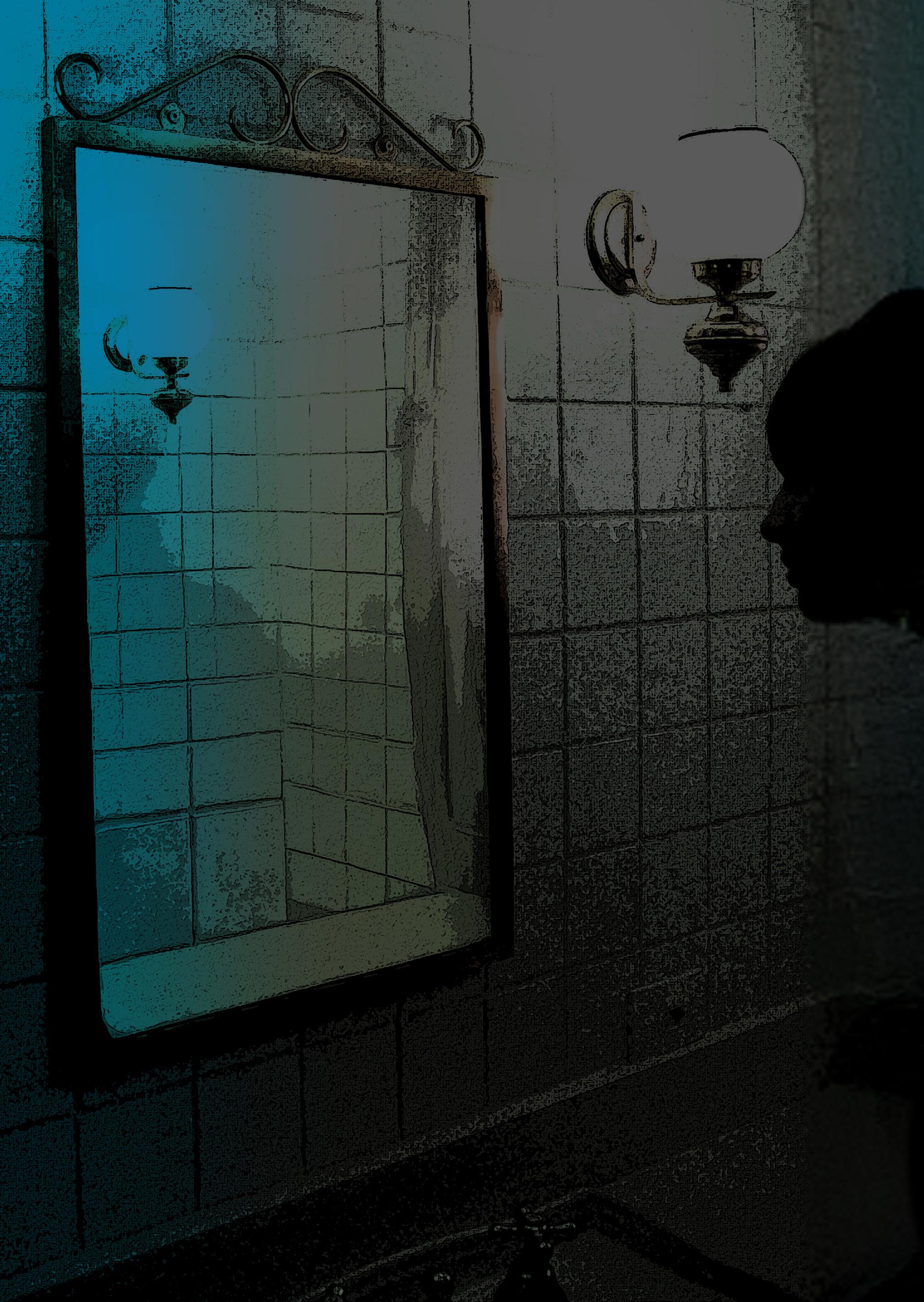 Nancy jolted at the sound of the bathroom door flying open. She was the only one home. Gingerly, she peered over the top of the tub. No one. Or at least no one she could see. Nancy blinked, and the door was closed once again, locked from the inside, just as it had been before. Just a trick of the mind.