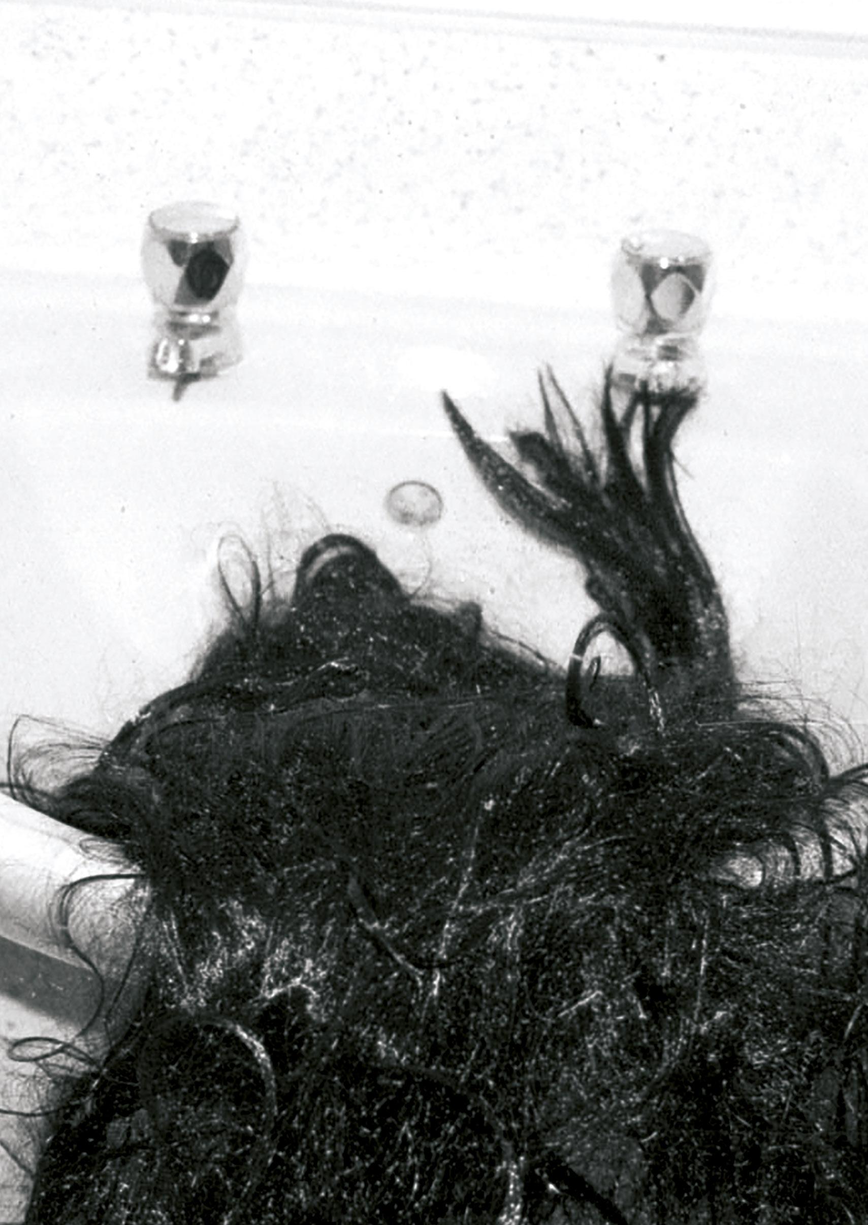 Her grasp weakened. Up. Down. Up. Down. She must be almost there. Up. Down. Up. Down. Out. She tossed the blade to her side with a great cry. She was satisfied with her incision. She released her grip on the side of the tub, her fingers painted shades of black and blue from tight squeezing. She eased both hands up to her stomach and teetered her fingers on the gushing incision. She winced as she slipped her fingers in, poking and swirling her fingers around her warm insides as she gently burrowed deeper, easing apart the layers of her body as she delved towards her womb.