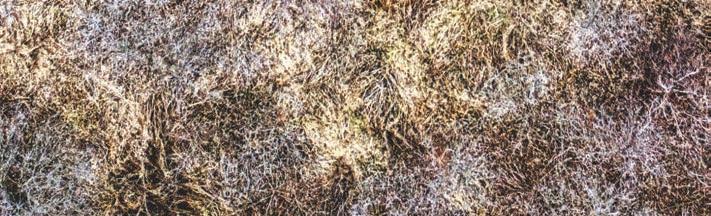 from surplus Burberry fabrics. The tree is covered in wild foliage and thistle, Scotland’s national flower, as a nod to Burberry’s connection to the Highlands. The colours and textures bring the outdoors in, drawing from the beauty of the UK’s rich landscapes. The tree features hanging brass bells inspired by the house’s Equestrian Knight Design and baubles handmade by a British glassblower. A gold crown tops it off, while oversized chess