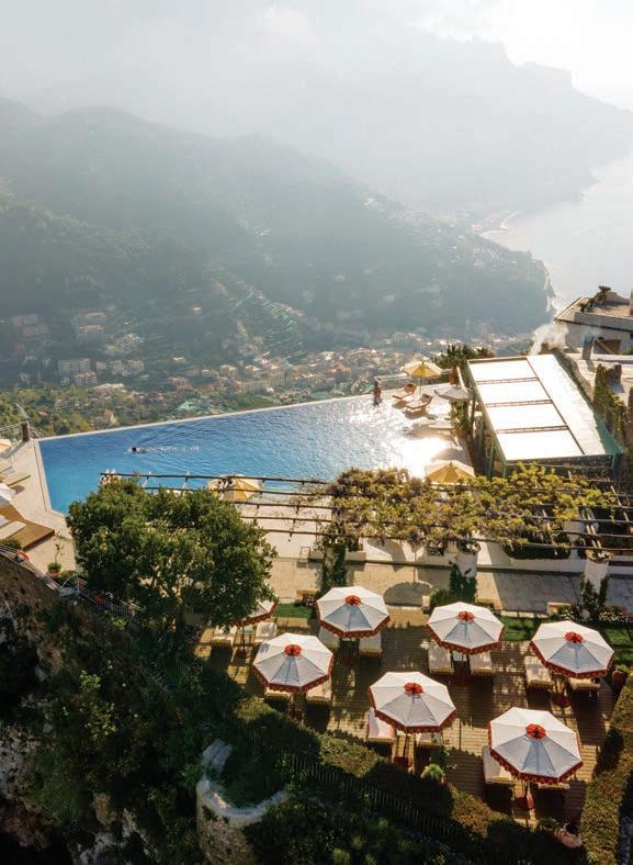 hotel’s history dates back to the 11th century, when a Roman noble family built the original palazzo. Over time, it evolved into a place where frescoes, vaulted ceilings, and terraced gardens create a kind of Mediterranean stage. Its newly opened pool club, La Piscina, blends wellness rituals with leisurely, sunsoaked relaxation, while the sweeping views create a feeling of floating between earth and water.