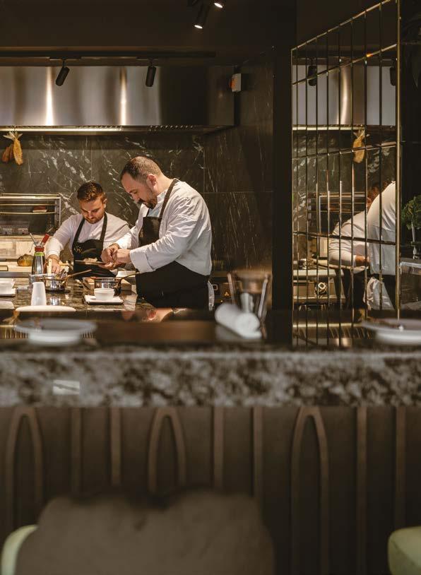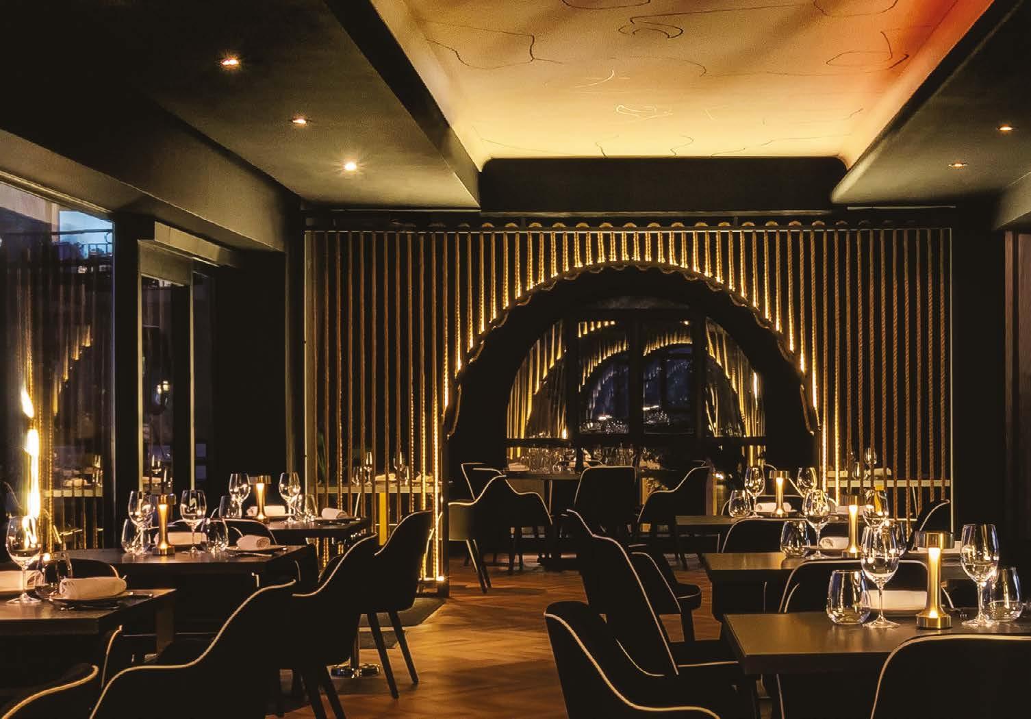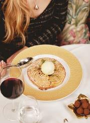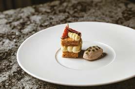 as comforting as it is elegant, alongside expertly prepared fish dishes and indulgent desserts such as the melting chocolate bombe with vanilla ice cream, honeycomb and hot caramel sauce, and thecaramelised apple tarte tatin, served with Madagascan vanilla pod ice cream and warm caramel sauce. The extensive wine list adds to the experience, while the famous Martini Trolley is a unique and sophisticated way to explore the world of