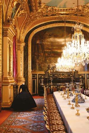 The journey begins with Byzantine and medieval influences, where gold, ivory, and gemstone-encrusted artefacts find their contemporary counterparts in couture creations. The Renaissance section reveals echoes of historical craftsmanship in rich ceramics, finely decorated armour, and grand-scale tapestries. Moving through the salons of the Conseil d’État, the opulence of the Grand Siècle is juxtaposed with fashion’s enduring fascination with 17th-century splendour. In the period rooms, ensembles from the 18th century are displayed in the intimate surroundings of interiors that resonate with their era. The final rooms celebrate the exuberance of the 19th century, culminating in a striking display within the Napoleon III apartments, where couture’s theatricality finds an ideal setting among gilded salons and lavish furnishings.