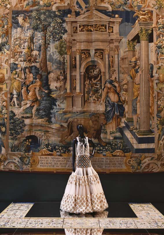 Curated by Olivier Gabet, director of the Department of Decorative Arts, the exhibition is arranged thematically rather than chronologically, encouraging visitors to explore at their own pace, while the scenography promotes a fluid, immersive experience, where garments are placed in direct conversation with the objects that inspired them. Mirrors enhance the interplay between past and present, reflecting silhouettes against gilded surfaces and medieval tapestries.
