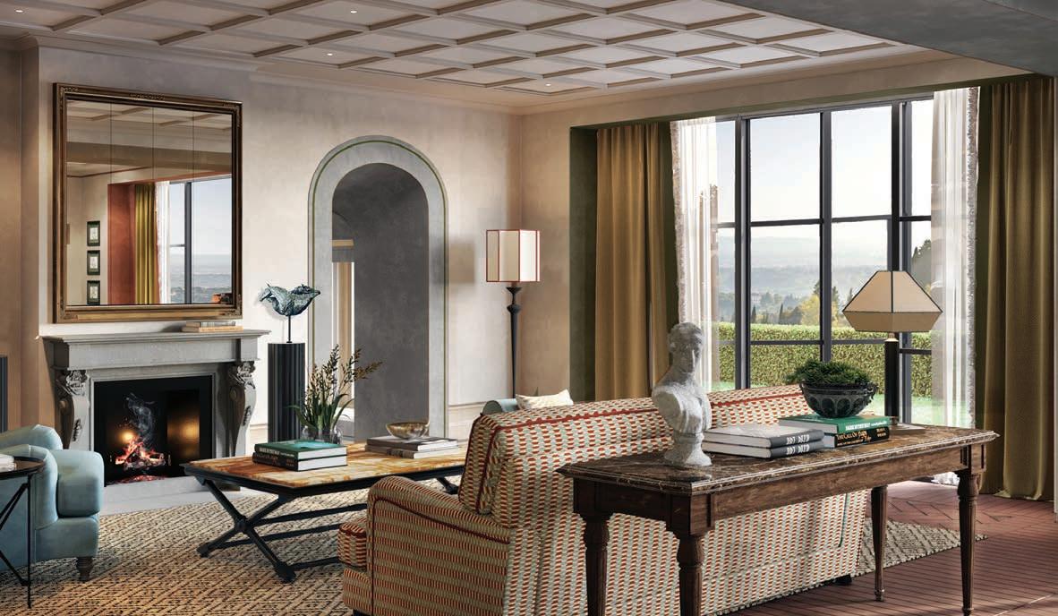 imagination. These interiors do not merely evoke the Villa’s history; they interpret it, renew it and project it into the restless dynamism of Florence. Authentic materials, including Tuscan textiles, artisanal ceramics, marble, terracotta and wood, become the vocabulary of a contemporary language that reimagines the Renaissance ideals of beauty, rebirth and discovery.”