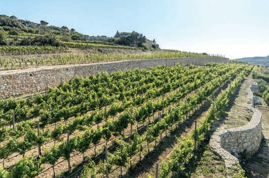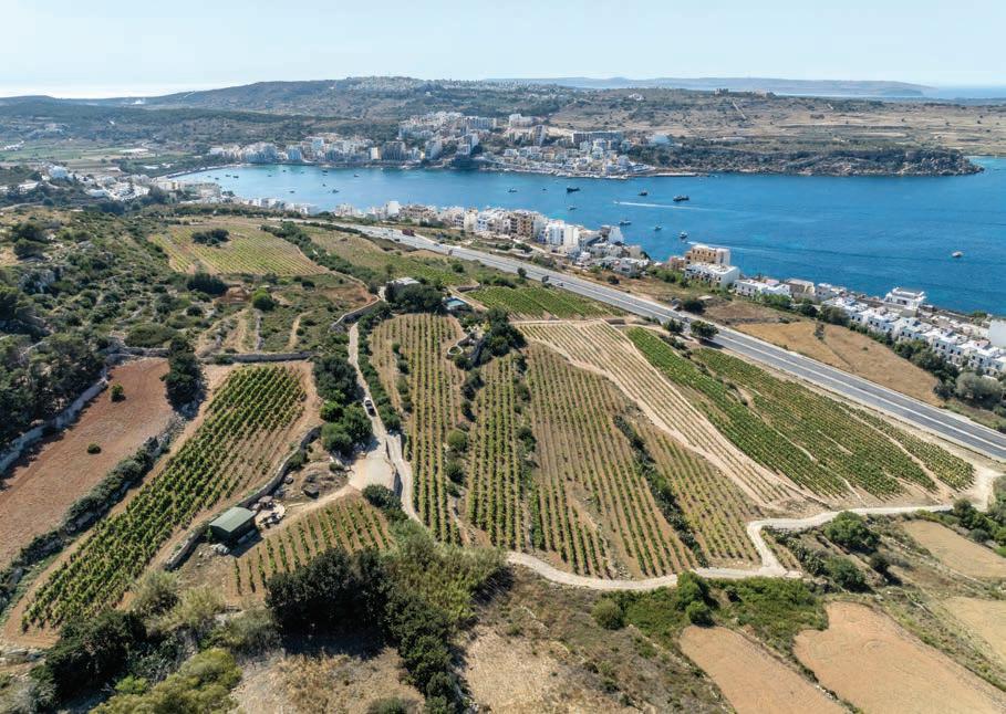 Nestled along the Burmarrad-Xemxija bypass, the Cheval Franc Estate spans 4.5 hectares of gently sloping land facing St Paul’s Bay. The location was selected for its unique microclimate and clay-based soils interwoven with about 20% terrarossa. This combination provides excellent drainage, minerality, and subtle salinity, lending the resulting wine both structure and vitality. The constant sea breeze moderates the summer heat, preserving the fruit’s natural freshness and aromatic complexity.
