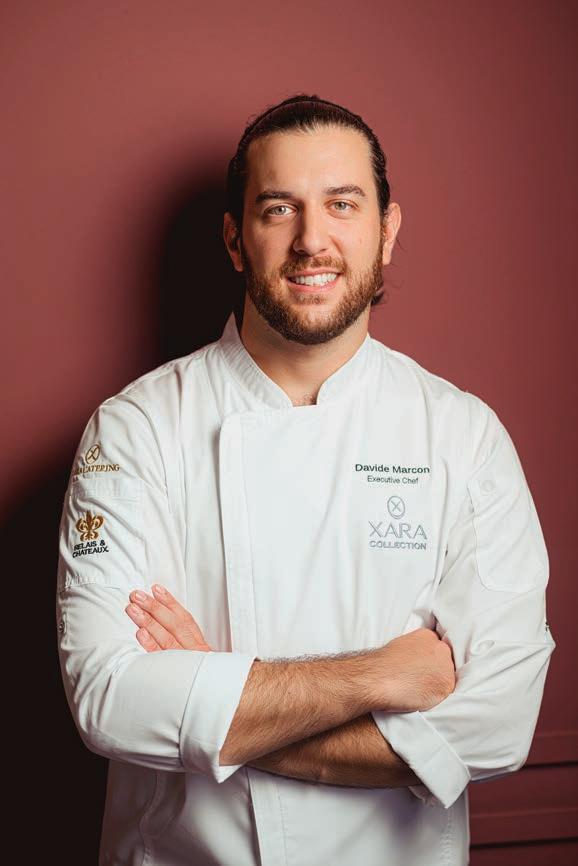 This page: ONE MICHELIN STAR. Rosamì retains its star under the direction of new chef Davide Marcon (below), whose Mediterranean sensibility brought a fresh direction to the menu. His arrival has added a new layer to the restaurant’s approach, blending refinement with a confident sense of place. Rosamì also received the MICHELIN Service Award, acknowledging the atmosphere created by director Charlo Cachia and his team. The award is based on the incredible atmosphere that the experienced and passionate team offers during the entire meal with the staff who present the menu with sobriety and professionalism, thus enhancing a gastronomic experience from welcome to the final farewell. Photography courtesy Rosamì / Xara Collection.