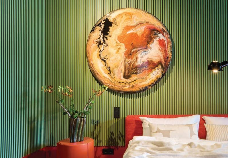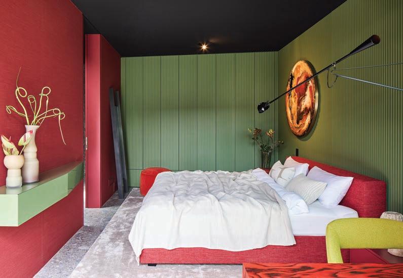 This page: The interiors reflect a collaborative journey between the client and Ippolito Fleitz Group, shaped by a growing appreciation for expressive colour and crafted materials Each object and surface contributes to a layered, sensual interior language that mirrors the client’s personal evolution.