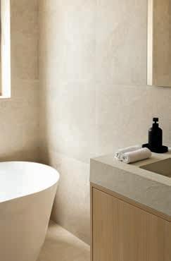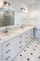 Above left & below: The contrast of cool smooth marble and warm wood provides visual and tactile texture. Marble works were supplied and installed by Desana Marbles