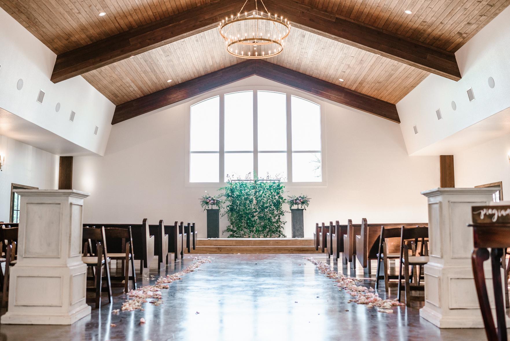 Reminiscent of a quaint church in a Provencal town, The Chapel is ideal for a more traditional indoor wedding Outfitted with gorgeous wood finishings, stone details, and large, dramatic windows, it's the perfect embodiment of Hill Country chic