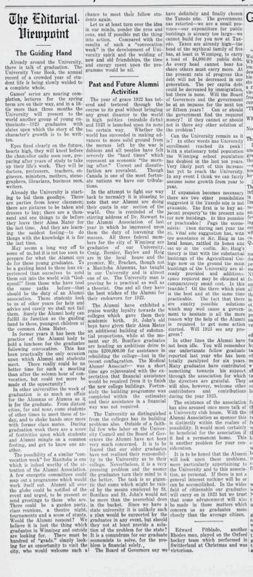 The Manitoban is the official student newspaper of the University of Manitoba. It is published monthly during the summer and each week of regular classes during the academic year by the Manitoban Newspaper Publications Corporation.