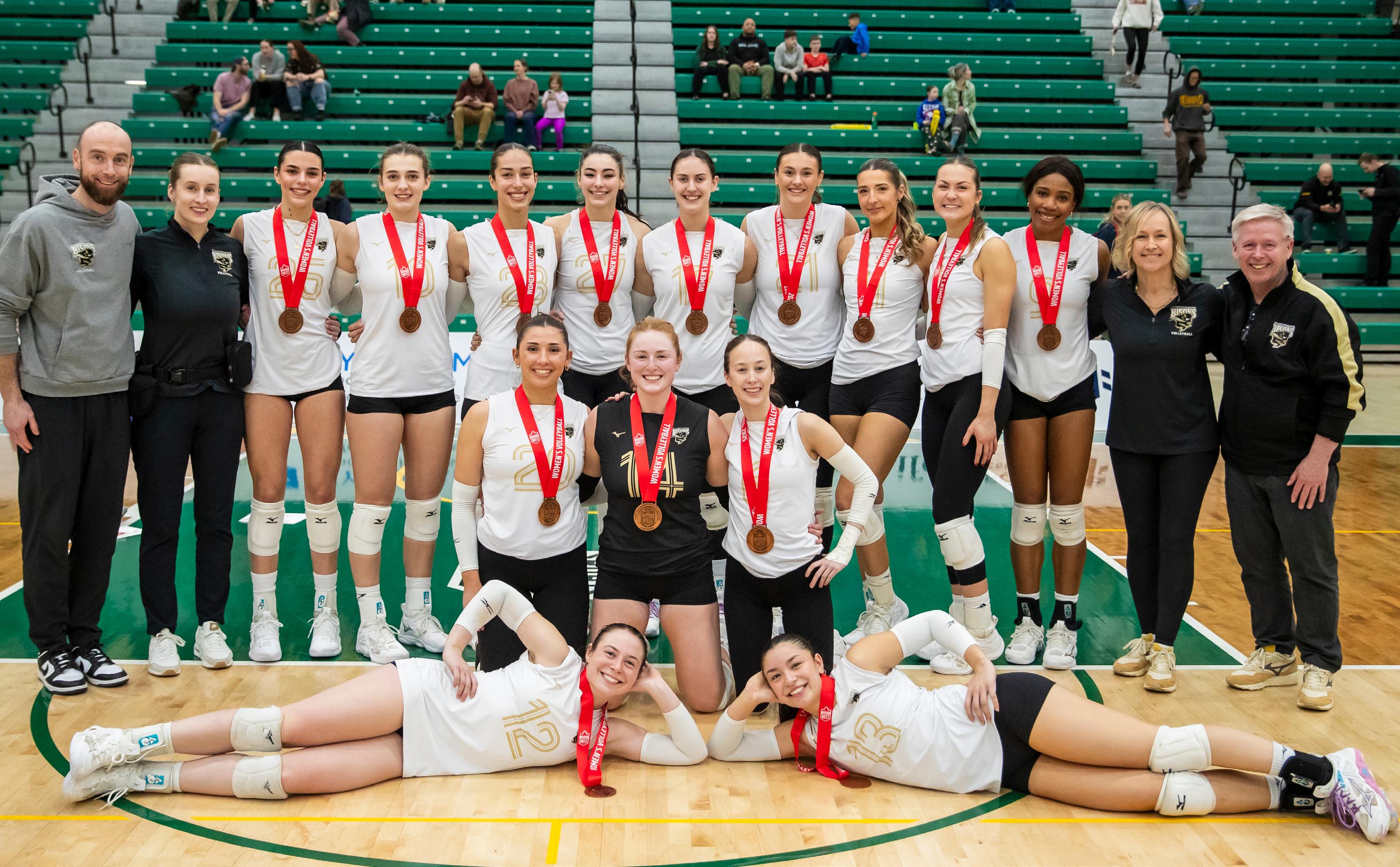 The women’s volleyball team beats the Saskatchewan Huskies to finish 3rd place