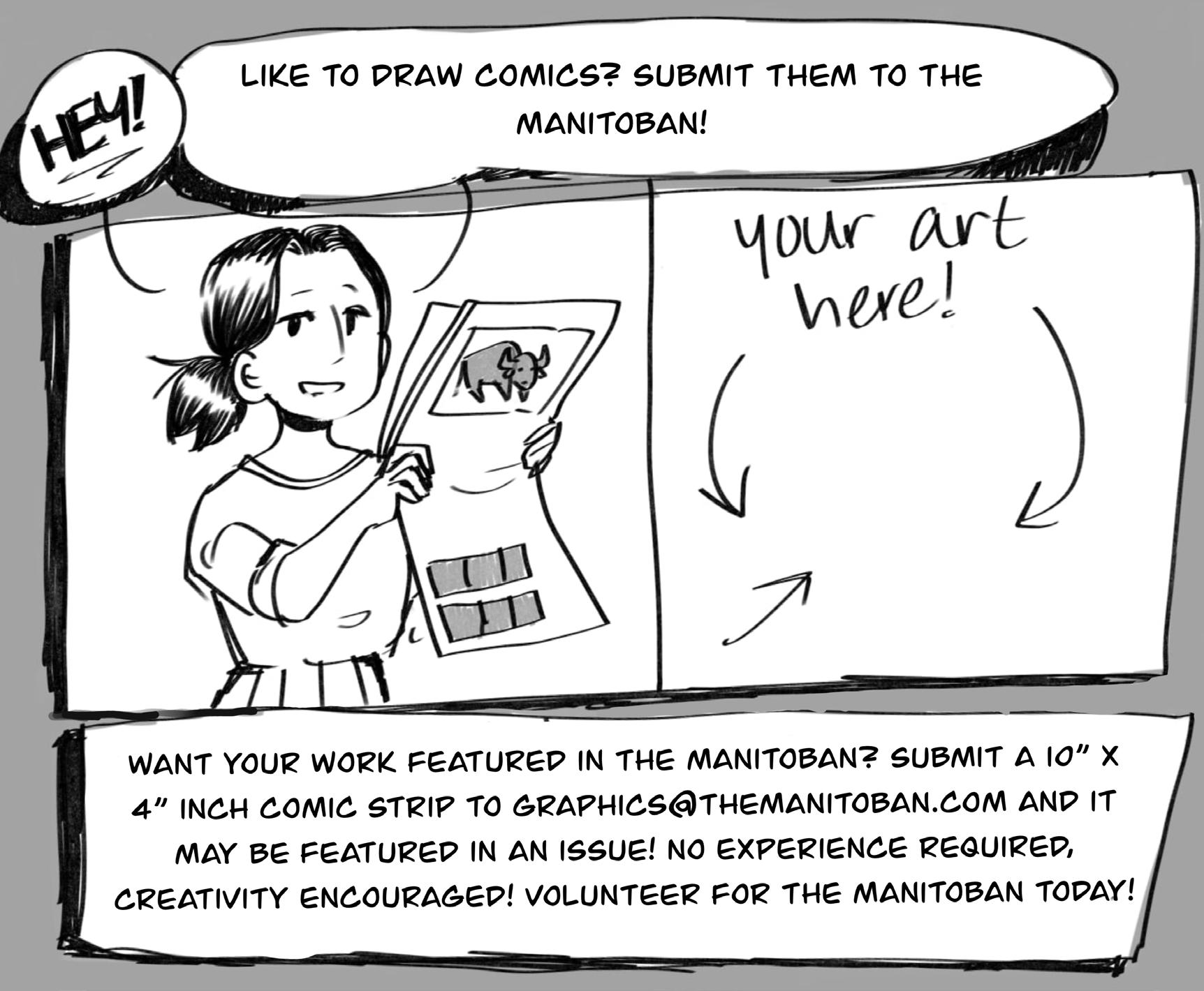 The Manitoban reserves the right to edit all submissions and will not publish any material deemed by its Editorial Board to be discriminatory, racist, sexist, homophobic or transphobic, ableist or libellous.