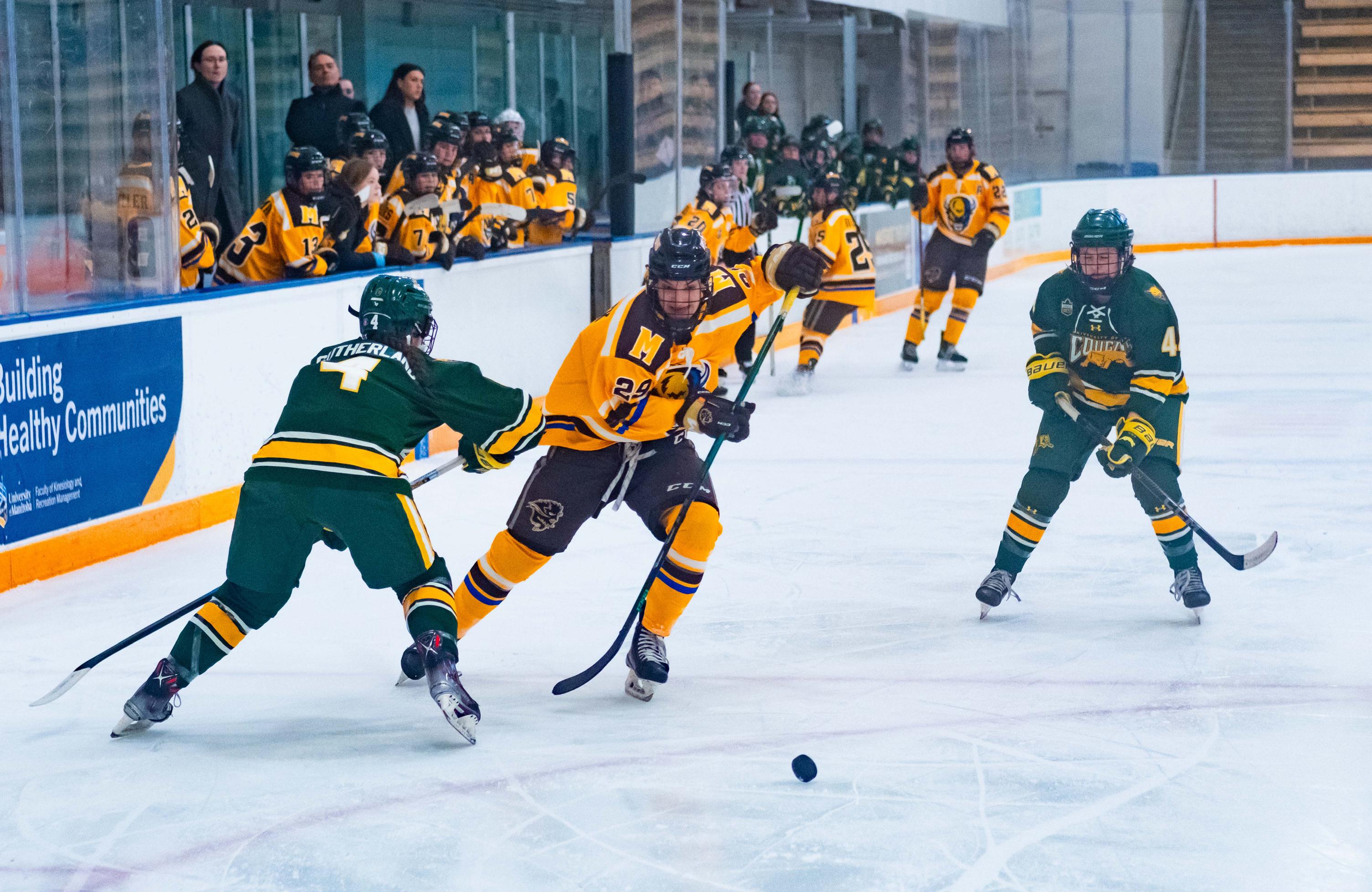 The Bisons rounded off November with 5-2 and 4-3 victories over the University of Regina Cougars in a thrilling matchup. In the first match on Friday, Nov. 28, the Bisons came out strong, scoring three goals in the first period, setting the tone for the rest of the game.