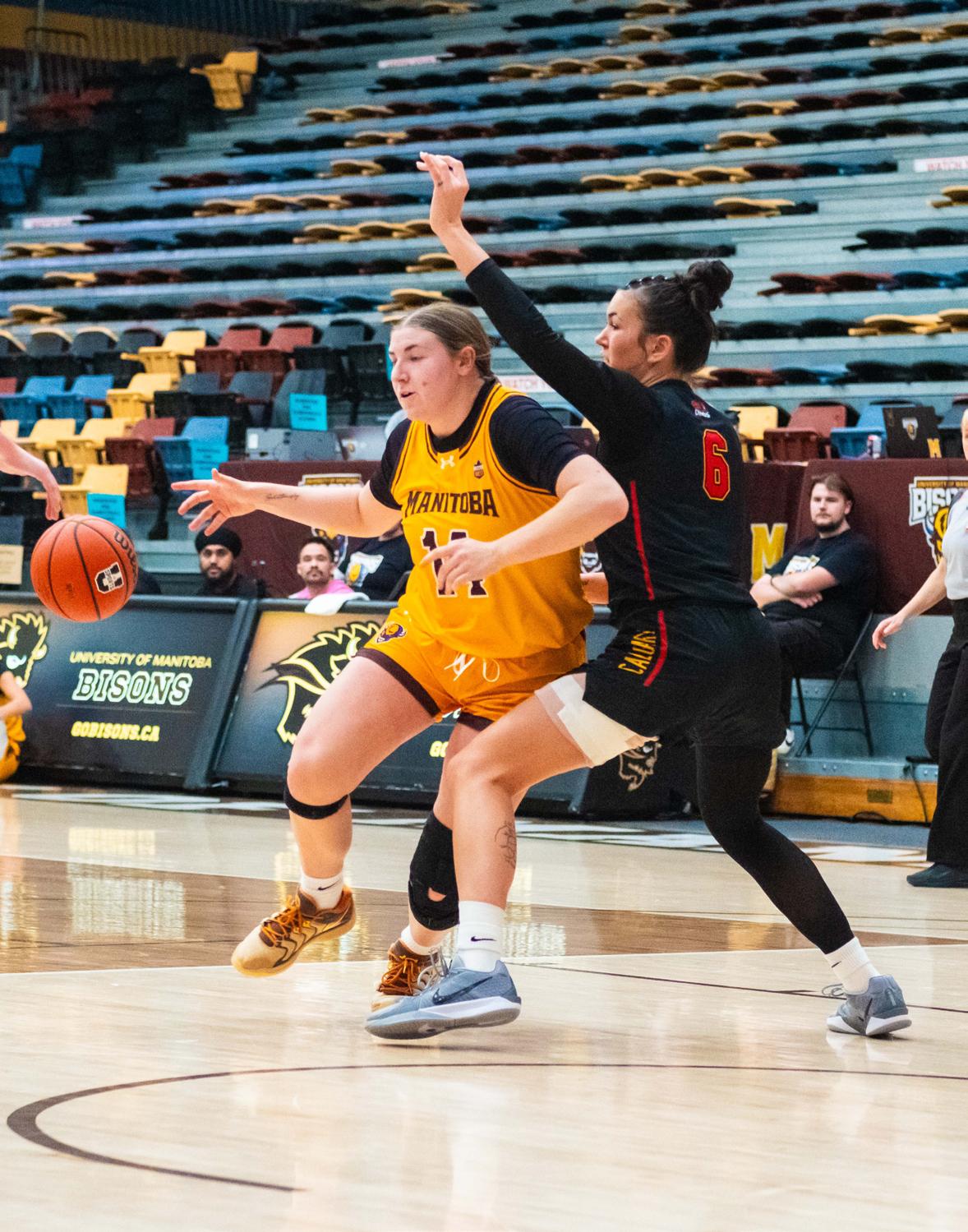 The Bisons women’s basketball team faced the University of Calgary Dinos at the Investors Group Athletic Centre on Friday, Nov. 28 and Saturday, Nov. 29. They lost the first game 84-59 and the second game 76-54.