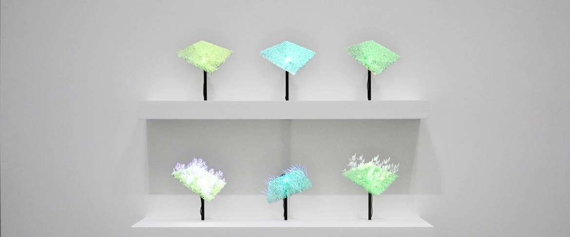 There is some variation between the exhibition at Urban Shaman and the one at WAG-Qaumajuq. The exhibition at Urban Shaman has a greater focus on Allison’s multimedia works, including CGI holographic grass that can be projected onto a lawn, while the installation at WAGQaumajuq focuses primarily on “relationship building” and “gestures of care.”