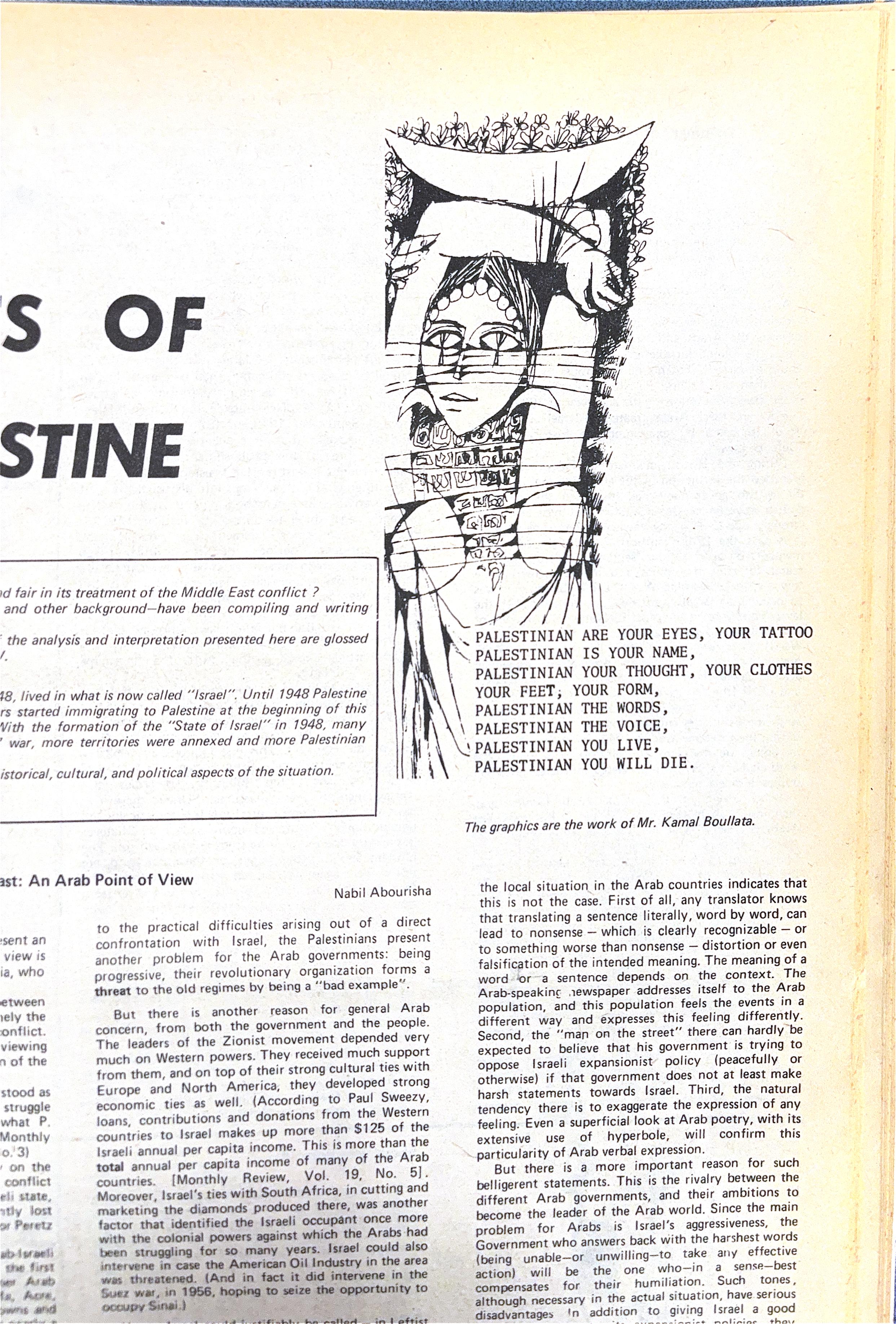 ABOVE GRAPHICS BY MR. KAMAL BOULLATA, PER THE MANITOBAN 1972 ARCHIVE