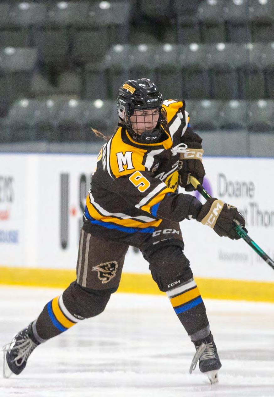 The Bisons women’s hockey team made it to the nationals for the first time since 2019. Despite giving it a tough fight, the Bisons lost 1-3 to the Concordia University Stingers in the quarter-finals on Thursday, March 19, and lost 0-2 to the University of Waterloo Warriors in the consolation match on Saturday, March 21. On Thursday, Audrey Clavette gave the Stingers a 0-1 lead in the eighth minute [08:14], after her team had seven shots. After that, the Stingers put more pressure on the Bisons by taking twelve more shots, and in the fourteenth minute [14:17], they scored their second goal.