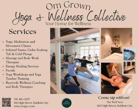 Summer in Baldwin City means patio dining, winery tastings, historic drives, downtown shopping, and relaxed small-town charm from morning to evening. Use the QR code on page 42 for a list of seasonal events.