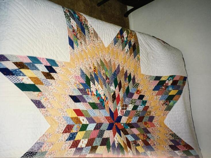 In my mother’s time, they were no less so, but they were also a necessity. In a time when nothing was wasted, and very little was bought, women made quilts to keep their families warm, to give as gifts, and yes, to compete a little. They gathered scraps of cloth from their sewing and from family and neighbors’ sewing scraps, and those scraps were seamlessly made into pieces of art. One such example was my mother, from the Vinland class of 1928, who invited a niece to her home to pick out a quilt as a wedding gift. She let her look through the many quilts my mother had made, and the young woman exclaimed when she found one that included scraps from a favorite dress that her mother had made for her sixteenth birthday. You know which quilt she picked!