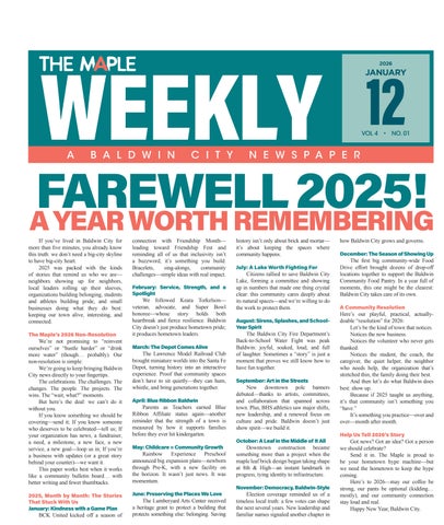 by Keara Torkelson 2023EndoftheSchoolYearIceCreamSocial The Lumberyard Arts Center The City Baldwin City The Baldwin City Library Baldwin City Chamber Commerce Baldwin City Recreation Commission USD 348 SPOTLIGHT ISSUE #04 www.baldwinmaple.com A BALDWIN CITY PUBLICATION OF BALDWIN CITY HIDDEN GEMS Caring for the gardens of Baldwin City THE QUILT CAPITAL OF KANSAS & Dogs! Home ofthe DAWGS Prairie City Cemetery Thehistoryof