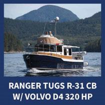 34’ RANGER TUGS R-31 2014300HP Volvo Penta D4. Northwest Edition, Command bridge, aft steering station, dinghy included, comfortable accommodations. $179,987.