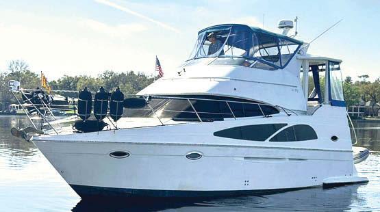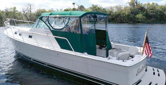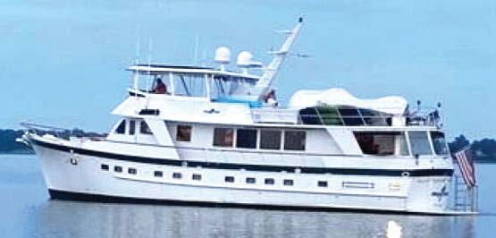 34’ SILVERTON 34C 2005 - $77,000. She offers twin Crusader Captain’s Choice 6.0 gas engines, Kohler 7.3 kW generator, dripless shaft seals, West Marine 8.5’ dingy with a 6hp Yamaha outboard, and a flybridge soft top that is less than 17’ from the waterline, so sublime is not only Great Loop capable, she is Champlain route capable. Curtis Stokes - 954 684 0218 - curtis@ curtisstokes.net - www.curtisstokes.net PDR1059