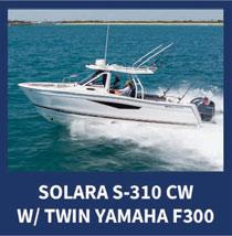 33’11” SOLARA S-310 SB 2026Impeccably equipped, a rare opportunity to own a like-new performance cruiser with twin Yamaha 300s showing very low hours. Designed for anglers, weekend cruisers, and family adventurers alike, this Solara blends cutting-edge technology with luxury comfort. $374,987. Location: Jensen Beach, FL. Capt. Robert Tolbert 443-595-6210, PocketYachtCo.com PDR1059