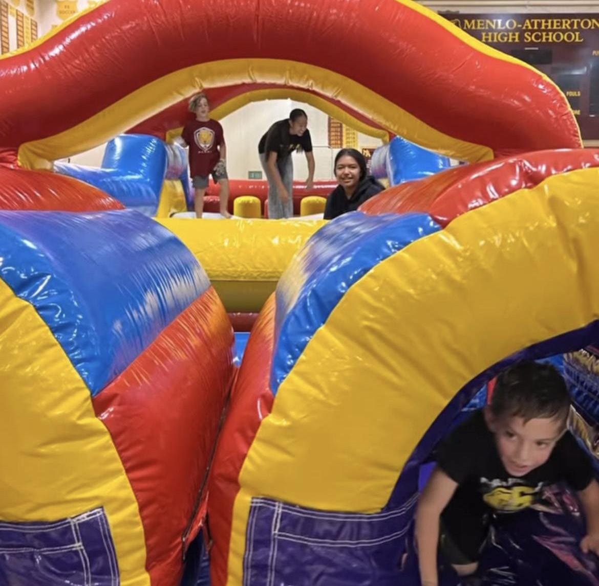Before every season, the girls basketball team holds a bouncy-house sleepover in Ayers Gym. The team plays laser tag, eats dinner, and hosts mini-games of basketball, dodgeball, and soccer. Players bring sleeping bags and inflatable mattresses and set them up around the gym. They eat breakfast together the next morning.