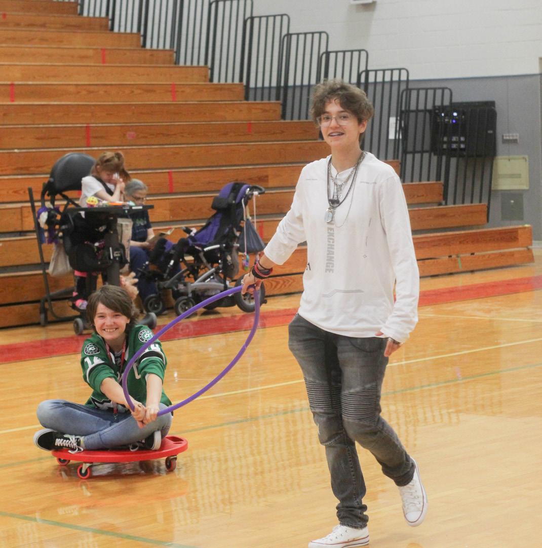 Volunteers, which are called leaders in the class, help the buddies–the life skills students. They teach social skills and help the students exercise.