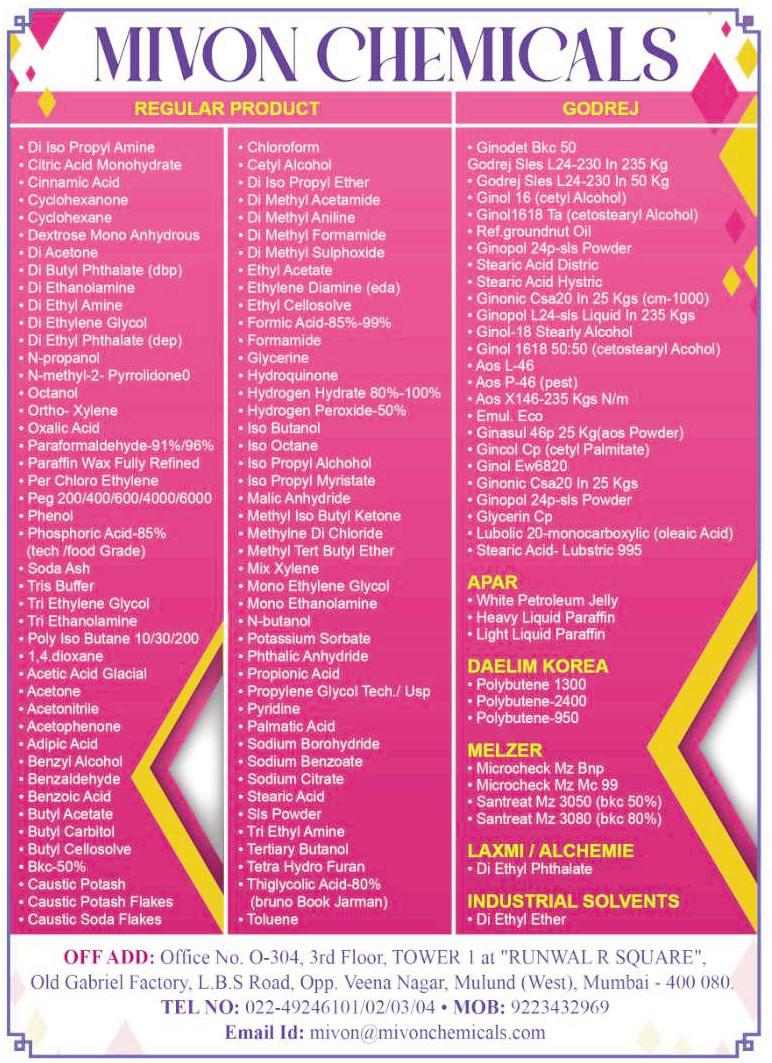 Manufacturers of Nutraceuticals, Preservatives and Speciality Chemicals