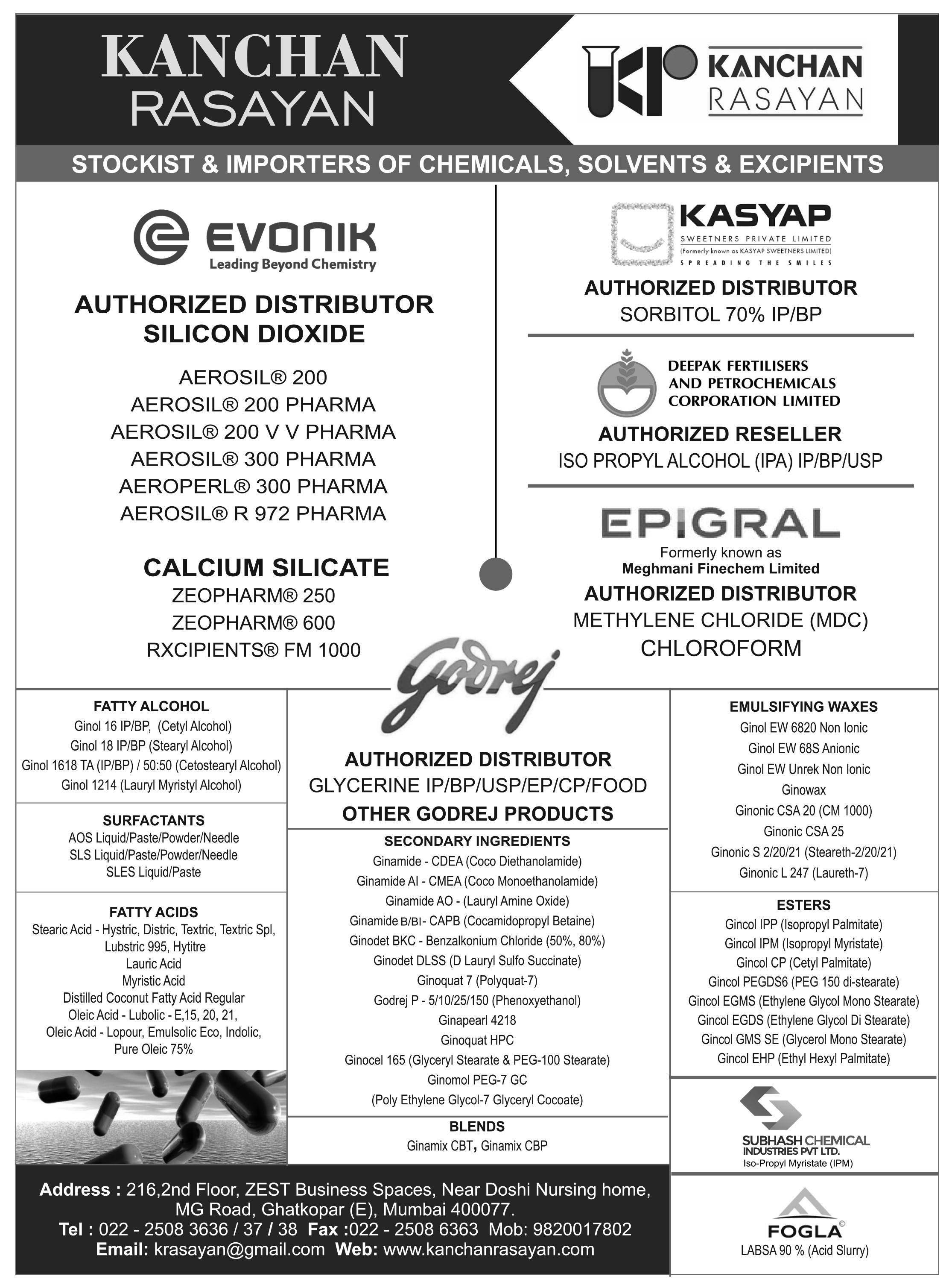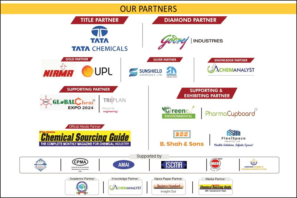 association with the PHD Chamber of Commerce and Industry (PHDCCI) and was collectively sponsored by Tata Chemicals, Godrej Industries, Nirma, UPL, Sunshield Chemicals, S A Pharmachem, Green Environmental, Triplan Engineering, Globalchem Expo, Pharmacupboard, B Shah & Co., Flexispace Logistics Pvt Ltd to name a few.