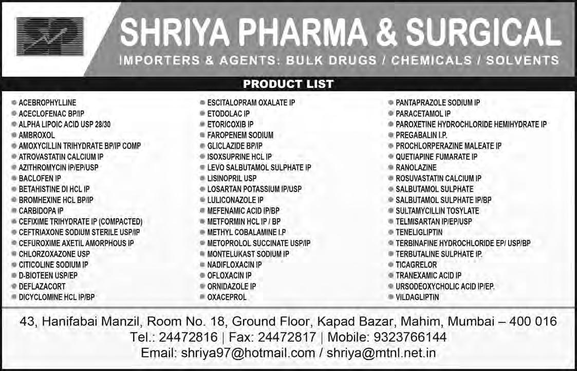 FactoryAddress: SyrohchemLaboratoriesPvtLtd #26,SurveyNo.230/A-1&230/A-2B, DOMSIndustrialComplex,Gokhivare, VasaiEast–401208