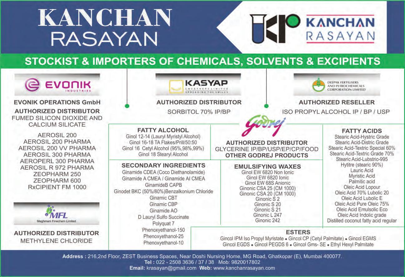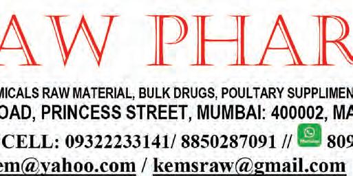 69 v Aerosil (Madhusilica) v Acetic Acid Glacial v Acetone v Alum (Ferric /Non Ferric /Powder) v Ammonium Bi Carbonate (RCF) v Ammonium Chloride (IP) (China) v CarbonTTeetra Chloride v Caustic potash Flakes v Di Ammonium Phosphate (DAP) v Dex Mono / Anhy (Universal) v Ferric Chloride Anhydrous v Gli(Idi) v Po v Po v Po v Re v So v So v So v So v So v So v So v S ration.co.in oration.com in, infokc9@gmail.com 9222447459 Maharashtra. , Mira Road (East).Nagar ly Aluminium Chloride ttasium Chloride tassium Sorbate (China) fined Salt(GHCL) dium Benzoate da Ash (Dense / Light) dium Hypochloride (6% & 12%) dium Sulphate Anhydrous dium Starch Glycolate dium Bi Carbonate rbitol ulphamic Acid odium Metabi Sulphide odium Sulphate Flakes (YYeellow) hioure (Imported) reaTTeechincal Grade White dexstrine www.keshariyacorpo www.keshariyacorp Email:keshariya_cor@yahoo.co. Mobile:9820430709 / Dist-Thane, Pin-401 107 A/56, Sector-3, Shanti202, Bldg v Alcohol. (TIso Propyl Taaiwan / Deepak) v Methyl Ethyl Ketone (M.E.K) v Methanol v Malto Dexstrine (Ambuja) v Phosphrous Acid (China) Su v S v S v T v U v Mob: 9920284706 / 8108446677. Email: welcomechemicals@yahoo.co.in Website: http://www.welcomechemicals.com MSME UAN No.MH33D0049064 CRISIL RATING - TRUST SEAL: “SE 3B”. PRODUCT LIST l Aluminium Silicate l Aluminium Oxide l Bentonite l Alumina l Calcite l Diatomaceous Earth l Graphite l MgO l Mica l Potassium silicate l Red Oxide l Silica Sand l Sodium Silicate l PPT Silica l Vermiculite l Zeolite l Zinc Borate l Zinc Phosphate l Zinc Stearate READY Y STO ALWAAYYS SORBIC A (FCC IX / E-200) (Pu POTTAASSIUM S (FCC IX / E-2 Confirming IP / BP / EP / USP (P (ISO 9001 : 2015 Certified) CK AT, L LTTD., MUMBAI O T1 Certified) 09322591096 / 28776031 / info@nisinindia.com w.nisinindia.com CID rity >99%) A SORBATTE 02) g T To o Purity >99%) mulations WELCOME PHARMABIMAL L A PVT (ISO 9001 : 2015 & AE MOB.: 09702968181 / LL.: 022-28775166 E-mail : sales@bimalpha.com www.bimalpha.com / ww ( For Pharma For Dev Pharmaceuticals Shap No. 8, Gr. Floor, Shree Naman Plaza, Behide Namah Hospital, S. V. Road, Kandivli- West, Mumbai – 400067. Tel: +92-22-2862 4433 l E-mail: devpharma@ymail.com IMPORTERS & DEALERS IN PHARMACEUTICALS RAW MATERIALS Ready Stock AZITHOMYCIN IP HYDROCHLOROTHIAZIDE IP – IPCA LACTIC ACID FCC 88 CITRIC ACID MONOHYDRATE Mob: 9824059105 / 9904959105 l l BORIC ACID IP ll DI-CALCIUM PHOSPHATE IP / BP/ FEED (ANHYDROUS / DIHYDRATE) l FRUSEMIDE IP l l GLYCINE IP l l HEAVY MAGNESIUM OXIDE l l LIGHT MAGNESIUM OXIDE l l MAIZE STARCH POWDER IP l l MANNITOL POWDER IP (PYROGEN FREE) l l PARA CHLORO META CRESOL l l PREGELATINISED STARCH IP / BP/ USP l l SODIUM BI CARBONATE IP/BP l l TRI-CALCIUM PHOSPHATE IP / FEED l l ZINC SULPHATE MONOHYDRATE USP