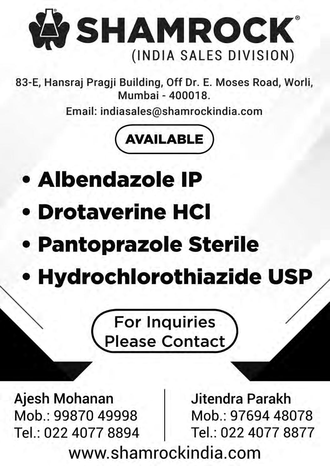 16 November - 30 November 2022 Vol.11 Issue 22, Pages 208 LORNOXICAM INH ETHYL OLEATE IP/BP/USP SUCRALFATE USP With GMP and DMF For More Products Please Visit Page No. 29 marketing@progresslifesciences.com +91 22 4978 1414 Manufacturer and Exporter of P PR RO OG GR RE ES SS S LI IFFE E S SCCIIEENNCCEES S P PVVT T L LT TD ARIHEET PHARMACHEM LLP V VITAMIN C I I P AASP P A AR TTAAME C CLOM M IPHENNE C CITTRAATTE IP MINNOOXI I DIL USSP Partner : Kevin Doshi Mob No: +91 9022243743 / 7021299060 Email Id: kevin@ariheetpharma.Com Website: www.ariheetpharma.Com Ready Stock Ex Bhiwandi M M ANUFAACTU U RINNG PRRODUUCCT T All Products Comply to BP / USP / EP / IP / JP ANTI BACTERIAL v Azithromycin Dihydrate v Azithromycin Monohydrate v Azithromycin (Bitterless) v Chloramphenicol v Chloramphenicol (Micronised & Sterile) v Chloramphenicol Palmitate v Clarithromycin v Erythromycin Base v Erythromycin Estolate v Erythromycin Ethyl Succinate v Erythromycin Propionate v Erythromycin Phosphate v Erythromycin Stearate LOCAL ANAESTHETICS v Articaine v Bupivacaine HCL v Prilocaine Base & HCL v Ropivacaine Base & HCL ANTI EMETIC v Prochlorperazine Maleate v Prochlorperazine Mesylate v Granisetron ANTI DEPRESSANT v Amoxapine ANTI HISTAMINE v Promethazine Theoclate NON-STEROIDAL, ANTI INFLAMMATORY DRUG v Tolfenamic Acid ANTI PRURITIC v Calamine THERAPEUTIC AGENT v Maleic Acid INTERMEDIATES v Des Azithromycin (Aza Amine) For Azithromycin v Erythromycin A Oxime Base For Macrolides TRADING PRODUCTS v Evening Primrose Oil v Borage Oil 313/314, Janki Centre, Plot No. 29, Shah Indl. Estate, Off. Veera Desai Road, Andheri (W), Mumbai-400 053. India. E-mail:chetan@mehtapharma.com E-mail:atul@mehtapharma.com Mob.: 0091-8390068777 Mob.: 0091-9821227077 Skype lD: csm.mpi Skype lD: asm.mpi Website: www.mehtapharma.com HORMONAL DRUG Melatonin For Products Please Refer Page No. 107 PROCHLORPERAZINE MALEATE IP/BP/USP DOXYLAMINE SUCCINATE USP GLICLAZIDE IP/BP DOMPERIDONE IP Mobile:- +91 9324211958, +91 9022445757 Email:- sales.crpharma@gmail.com Website:- www.crpharma.co.in CR PHAR R MA A Proprietor: Chintan Domadia www.mazadapharmaguide.com PRUDENCE PHARMA CHEM – Ankleshwar sales@prudencepharma.com 0091-2646-222825 Cell No: + 91-9825205460 / 9624042444 MANUFACTURER & EXPORTER OF l l Glimepiride l Pirfenidone l Torsemide l l Silodosin l l Glibenclamide l Celecoxib ll Amlodipine Besilate l l Levamlodipine ll Etoricoxib l Febuxostat l Deferasirox l Memantine l Phenylephrine ll Rivaroxaban INDIA 2022 EXHIBITORS LIST 108 TO 120